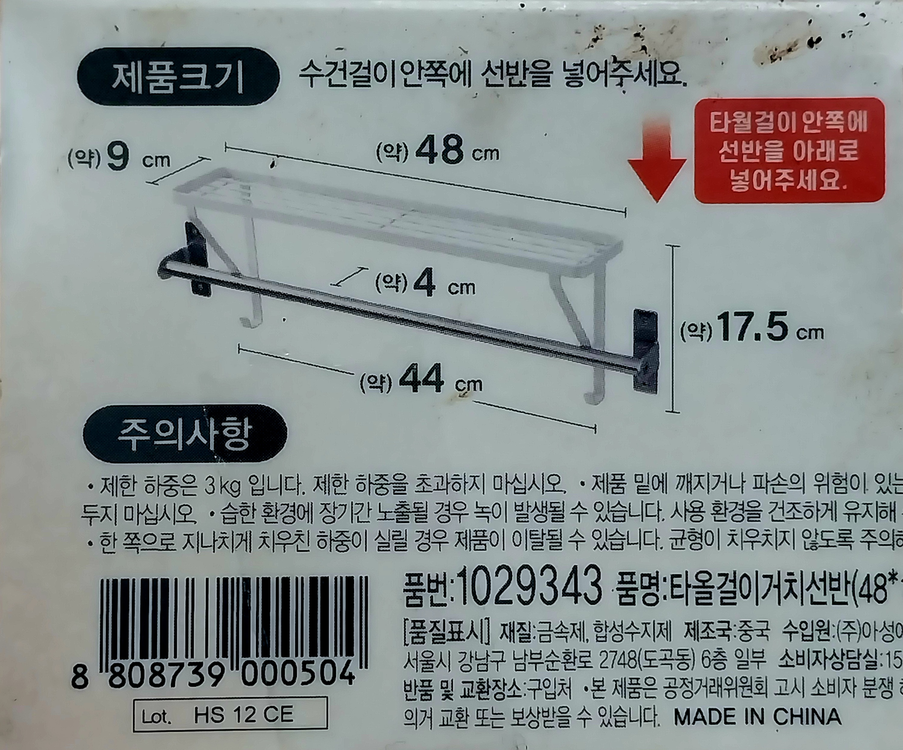 최대 하중 3Kg은 이미 설치되어 있던