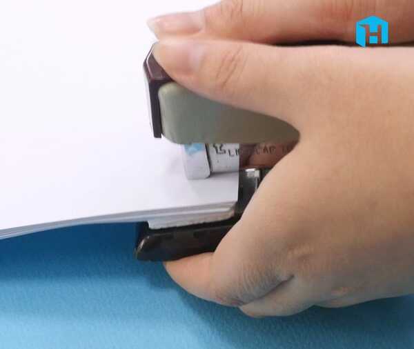 스테이플러 심 정리: 잘 찍혔는지 확인해보세요. 튀어나온 스테이플러 심은 스테이플러 뒷부분이나 칼의 철 부분으로 구부려서 정리해주시면 됩니다.