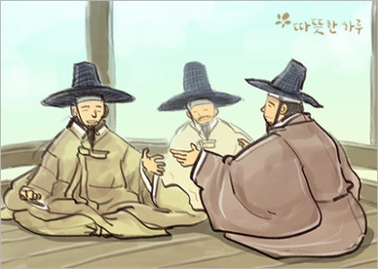 다산 정약용이 낙향해 친지들과 정자에 모여 이야기하고 있었습니다.