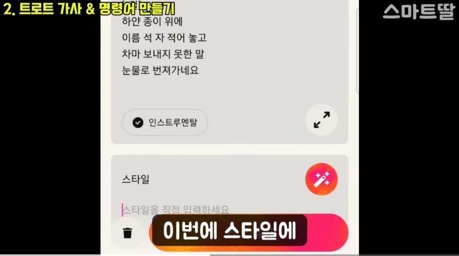 수노 AI에 사용할 스타일 명령어를 만드는 방법을 시연.