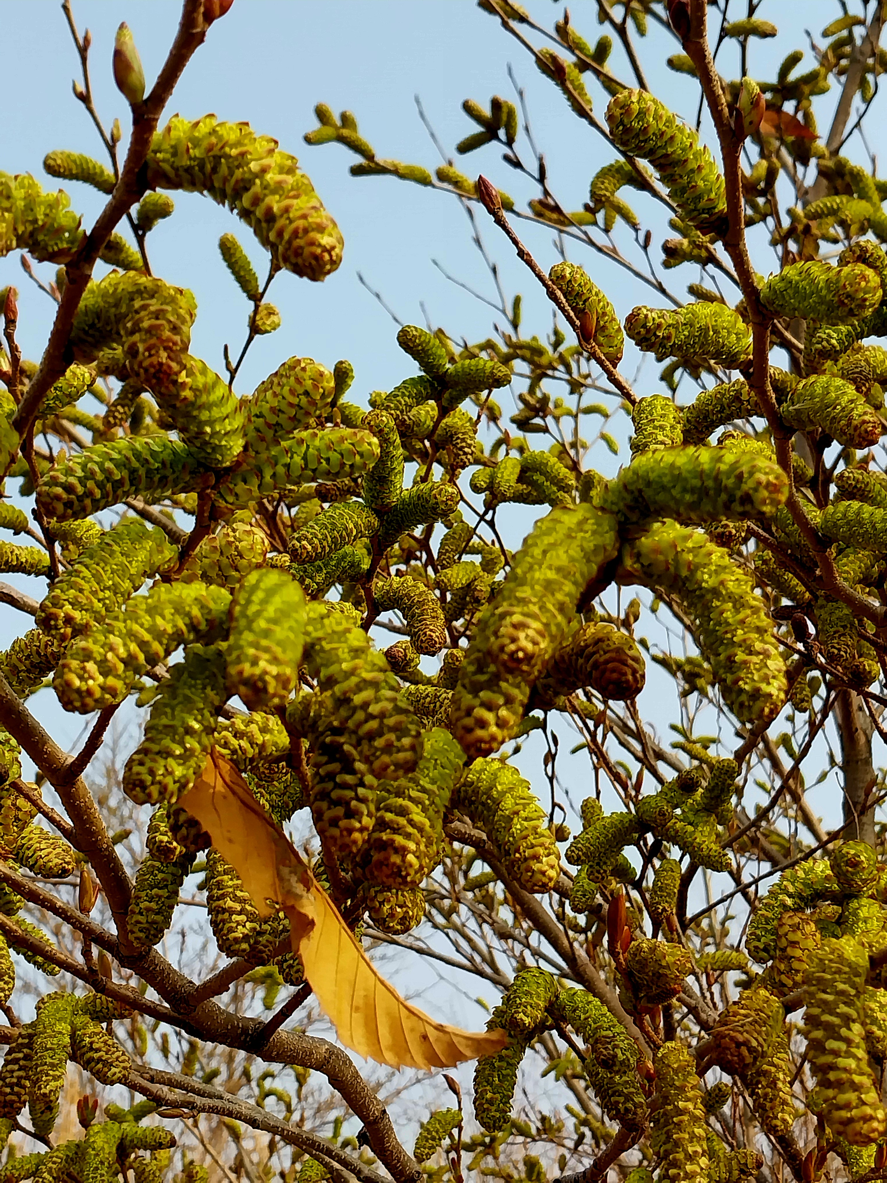 이름하여 수꽃차례(male catkin/inflorescence)라는데 미상꽃차례(꼬리 모양)로 가늘고 긴 꽃대에 꽃자루가 없는 수꽃들이 촘촘히 달린 형태를 말한다.